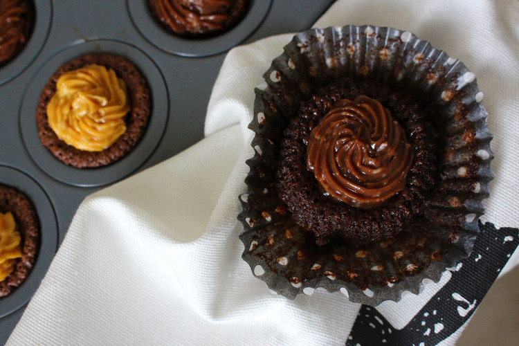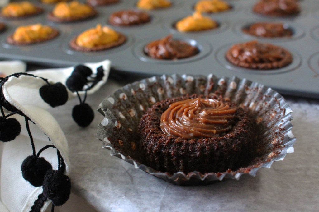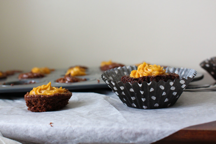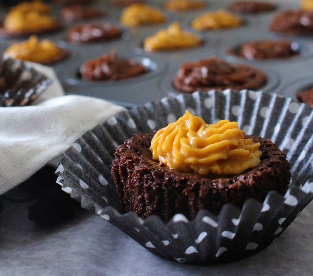 I can never get enough pumpkin, so of course these Mini Chocolate Cake Bites are decorated with both Nutella AND pumpkin cream cheese frosting. Seriously, these mini cake bites are all kinds of amazing. They melt in your mouth and satisfy your deepest chocolate craving.
