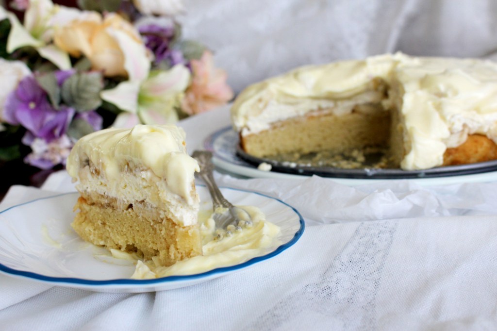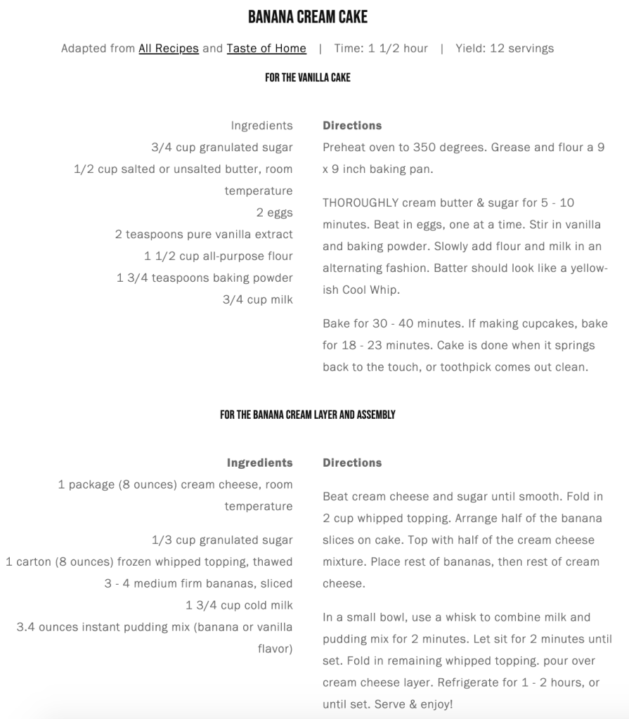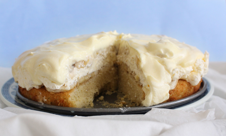 So banana pudding + banana cream cheesecake + vanilla cake = …banana cream cake!
