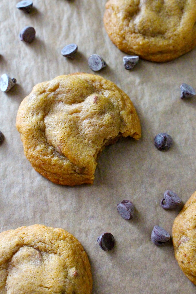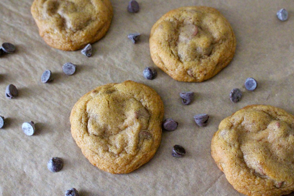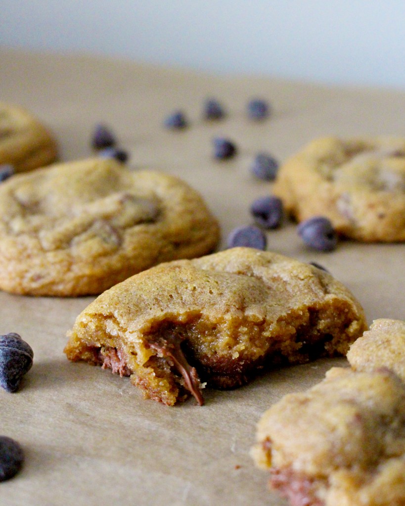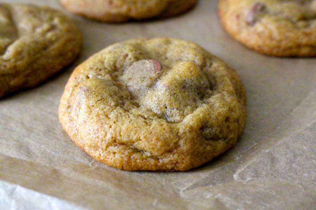 Roll out generously sized cookie dough balls and place on prepared baking pan, leaving a few inches between each. Bake one tray at a time for best results. Bake for 8 – 10 minutes, keeping a close eye. The cookies are done when the edges look slightly golden/crispy and the middle slightly undercooked. Remove from oven and let cool on cookie rack. Enjoy!