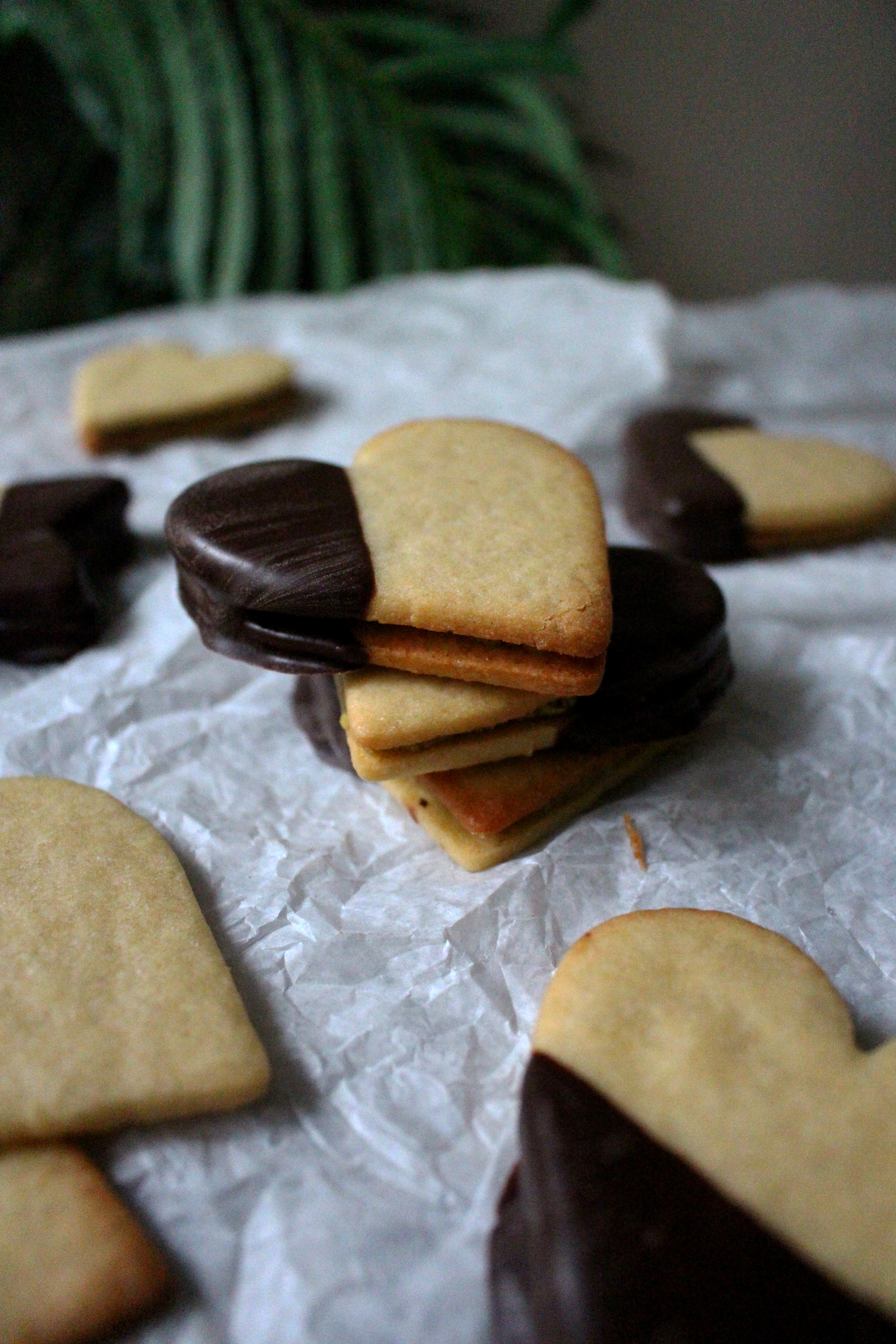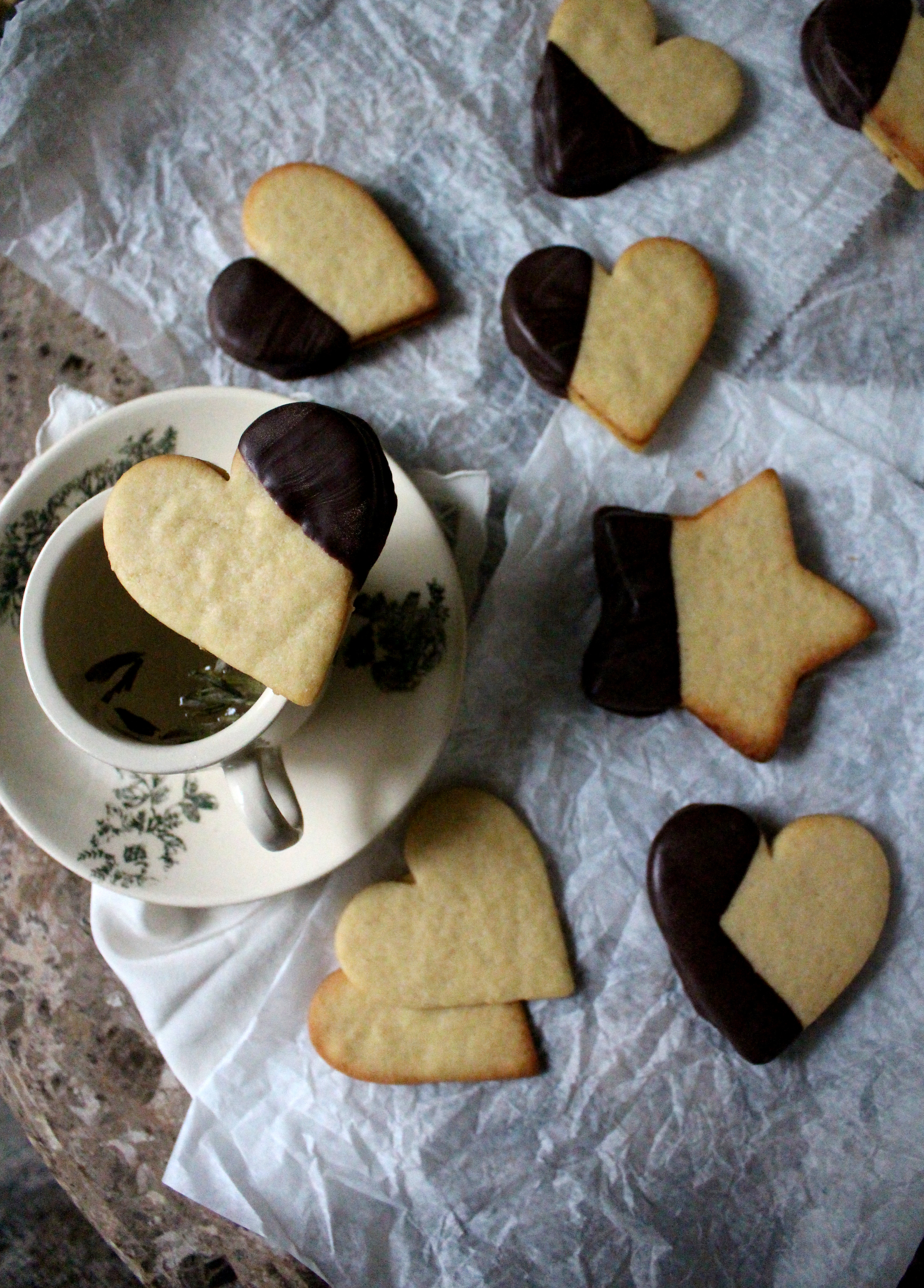 Amadeus cookies are usually shaped as circles, with fork indentations to create faint lines on the surface, but I thought it would be fitting to shape the cookies as hearts because “amadeus” is derived from the Latin word meaning “to love.” I also decided to incorporate butter cookies instead of shortbread. So in the end, these cookies may be a little different from the Amadeus cookies you might find in Vienna. In any case, I hope you enjoy!