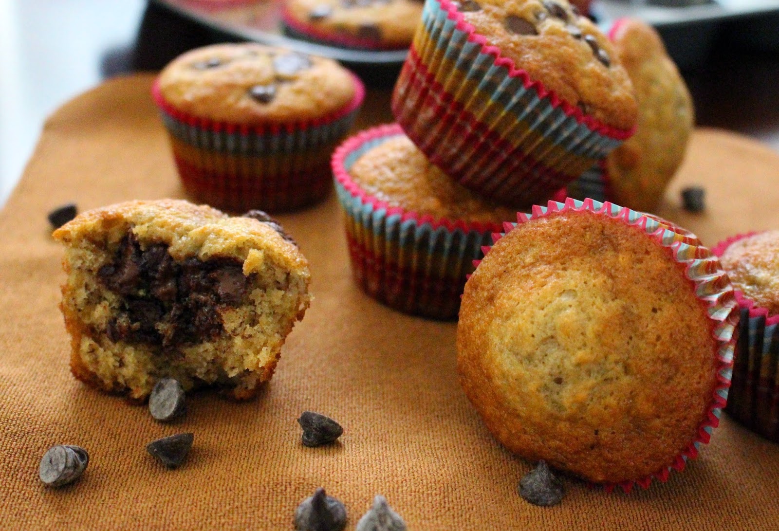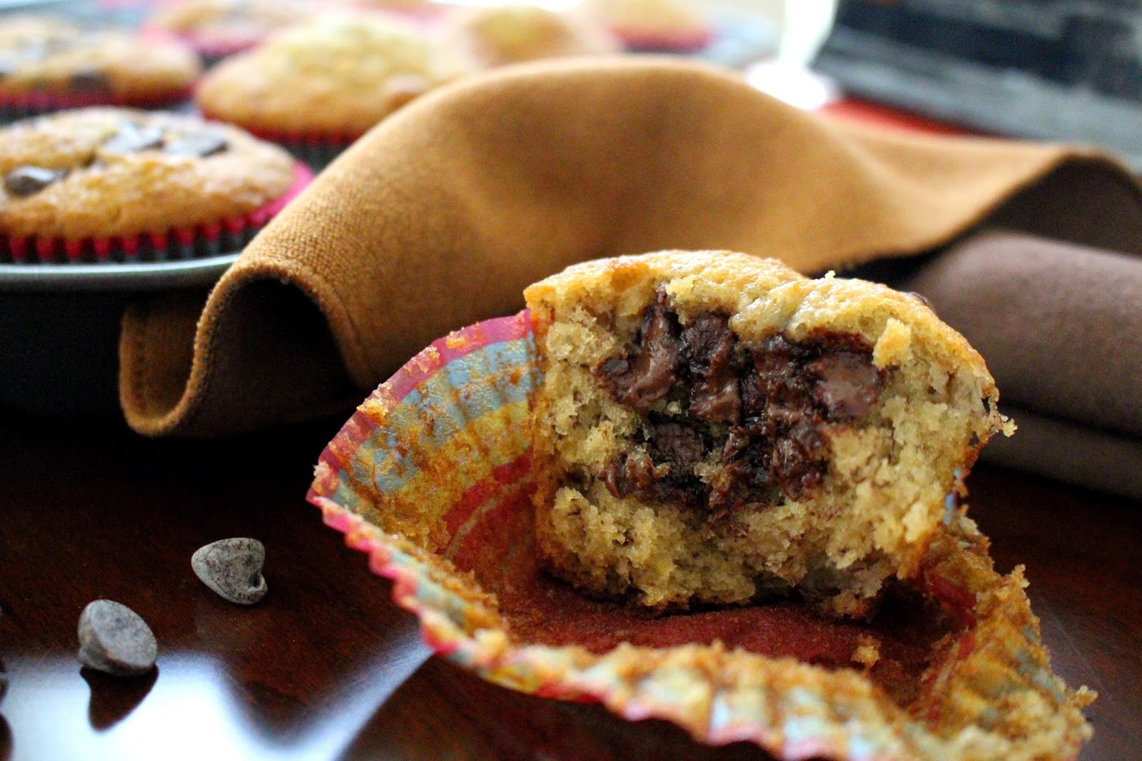 In terms of flavor, these muffins definitely have it going. Super moist and flavorful crumb, with just the right amount of sweetness and aroma from the banana. I added chocolate chips to half of the batch because, why not? It tastes great either way though.