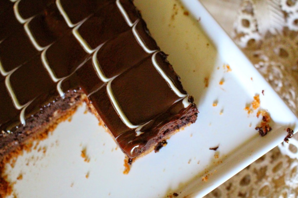 This Kit Kat Cheesecake Bar is a lovely and — get this — simple dessert. Graham cracker crust, layered with whole Kit Kat bars and luxurious dark chocolate cheesecake, and topped with silky smooth chocolate ganache with elegant white pin stripes. It’s delicious right away by the spoonful, but it’s even better after chilling overnight. The chocolate ganache infuses with the dark chocolate cheesecake, and makes for a rich chocolate experience, best served with a cold glass of milk. The best part, I think, is the caramelization that occurs between the Kit Kat layer and graham cracker base. That subtle caramel flavor, paired with the chocolate cheesecake, is simply sublime.