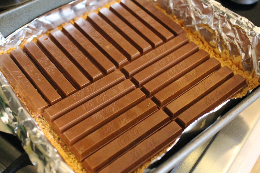 Place all ingredients in a bowl and beat until fully combined and smooth; set aside. Place Kit Kat bars on top of crust. Pour cheesecake mixture over Kit Kat bars and bake for 30 – 35 minutes at 350 degrees F. Remove from oven and set aside to cool. Preferably place in refrigerator when cool enough to touch.